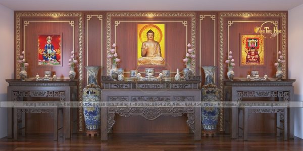 Đây là sản phẩm tinh tế được thiết kế bởi Phụng Thiên Hằng, kết hợp hài hòa giữa yếu tố phong thủy và nghệ thuật truyền thống. Với sự trân trọng văn hóa Phật giáo và thờ cúng tâm linh, không chỉ mang lại không gian trang trọng, thanh tịnh mà còn thể hiện sự thẩm mỹ và tinh tế trong từng chi tiết. Đây chính là lựa chọn lý tưởng cho những ai mong muốn một không gian thờ cúng trang nghiêm và có giá trị lưu truyền theo thời gian.
